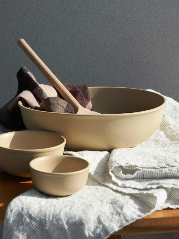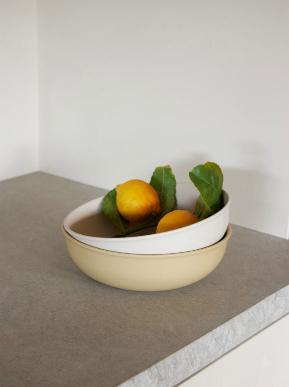 Elevate your everyday with the Halo ceramic collection. The design celebrates curves with its radiused profile and a flared lip to create a “halo” rim. The serving bowl is finished with a matte glaze that gives a deep yet refined colour.