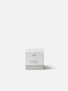 The soy-blend candle is attentively infused with French fragrances. The clean, calming blend of eucalyptus and lavender is designed to soothe the senses and create a restful atmosphere.