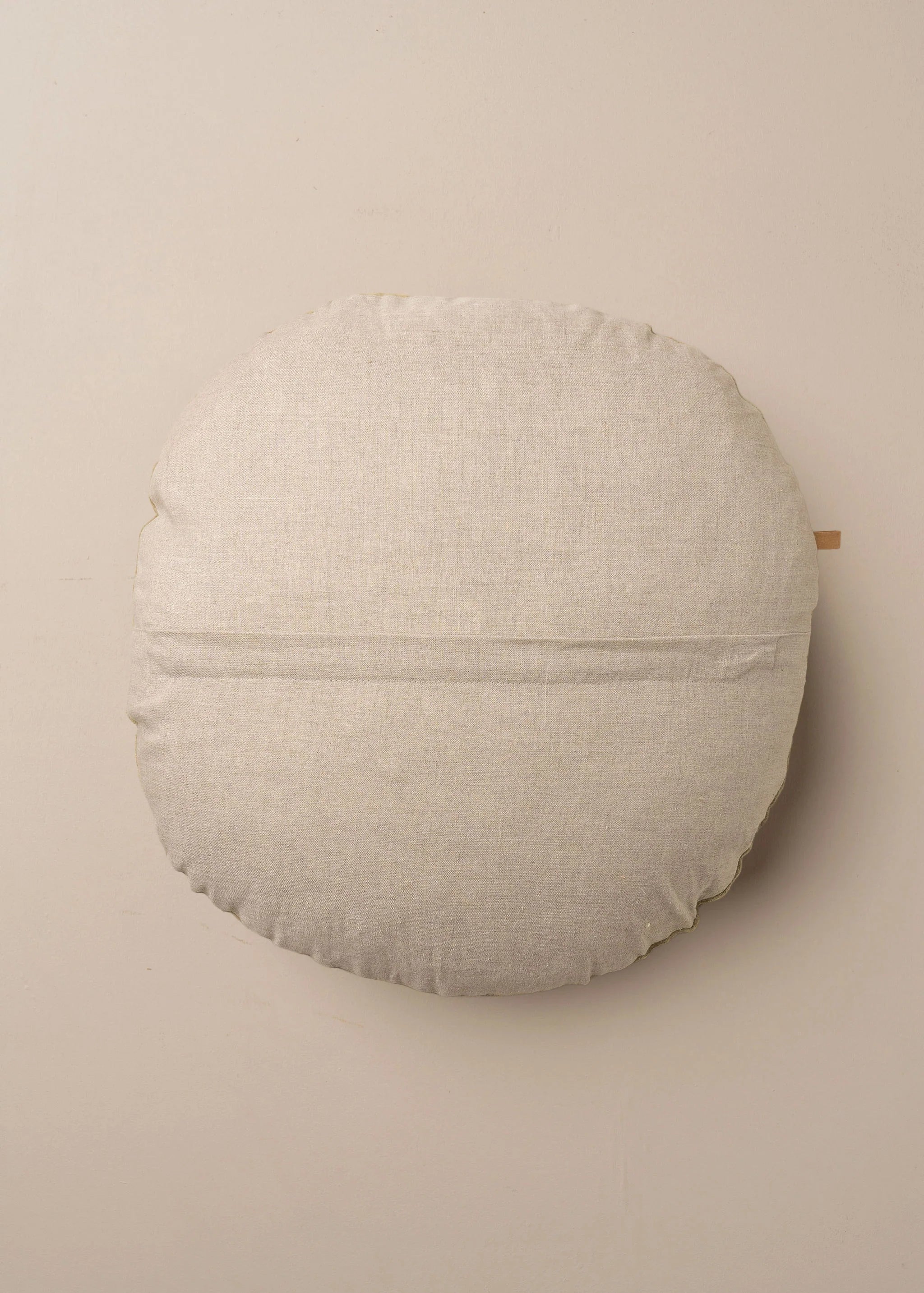 Our Stone Linen/Velvet Round Cushion is super soft, with vintage wash tones and reversible linen backing.