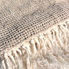 Handwoven from a lightweight linen-cotton blend, Solenne features a netted weave in natural and ivory yarns that enhances its organic character. Finished with hand-tied fringes on each side.